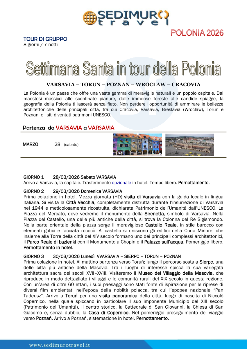 Settimana Santa in tour della Polonia da Varsavia 8 giorni