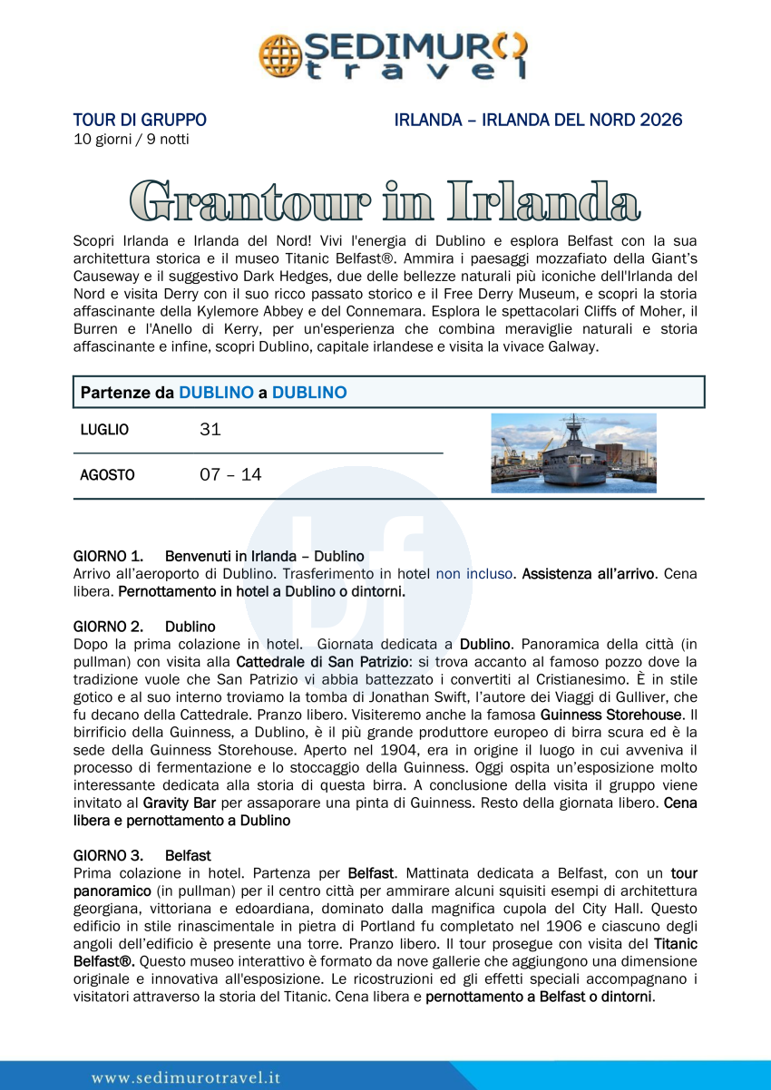 Grantour in Irlanda da Dublino 10 giorni